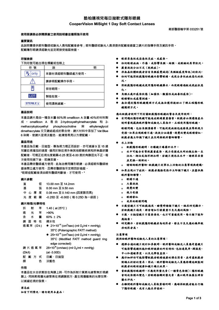 「新產品」Misight酷柏邁視兒每日拋軟式隱形眼鏡(衛部醫器輸字第033251號)